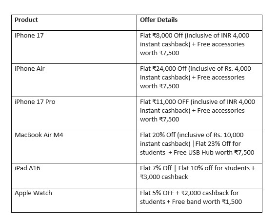 A range of opening offers, including attractive EMI options, trade-in benefits, and bank-led promotions will be available for a limited period. These offers are designed to lower entry barriers for first-time premium buyers, support planned upgrades, and enable customers to choose the right Apple products with confidence, without compromising on experience or value.